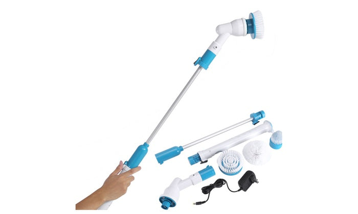Electric Spin Scrubber with Upgraded Handle, 360 Cordless Bathroom Scrubber with 4 Replaceable Shower Scrubber Brush Heads, 1 Extension Arm and Adapter for Tub, Tile, Floor, Wall and Kitchen